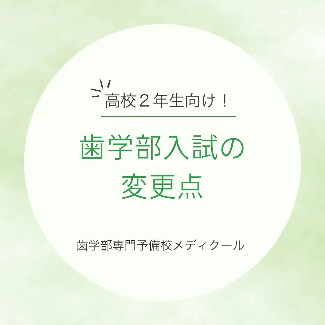 歯学部2027年度入試の変更点/メディクール 歯学部2027(令和9)年度入試の変更点/メディクールこんにちは!メディクール学生課です。今回は、2027(令和9)年度歯学部入試における変更点に関する情報をまとめました。歯学部を志望している高校2年生の…