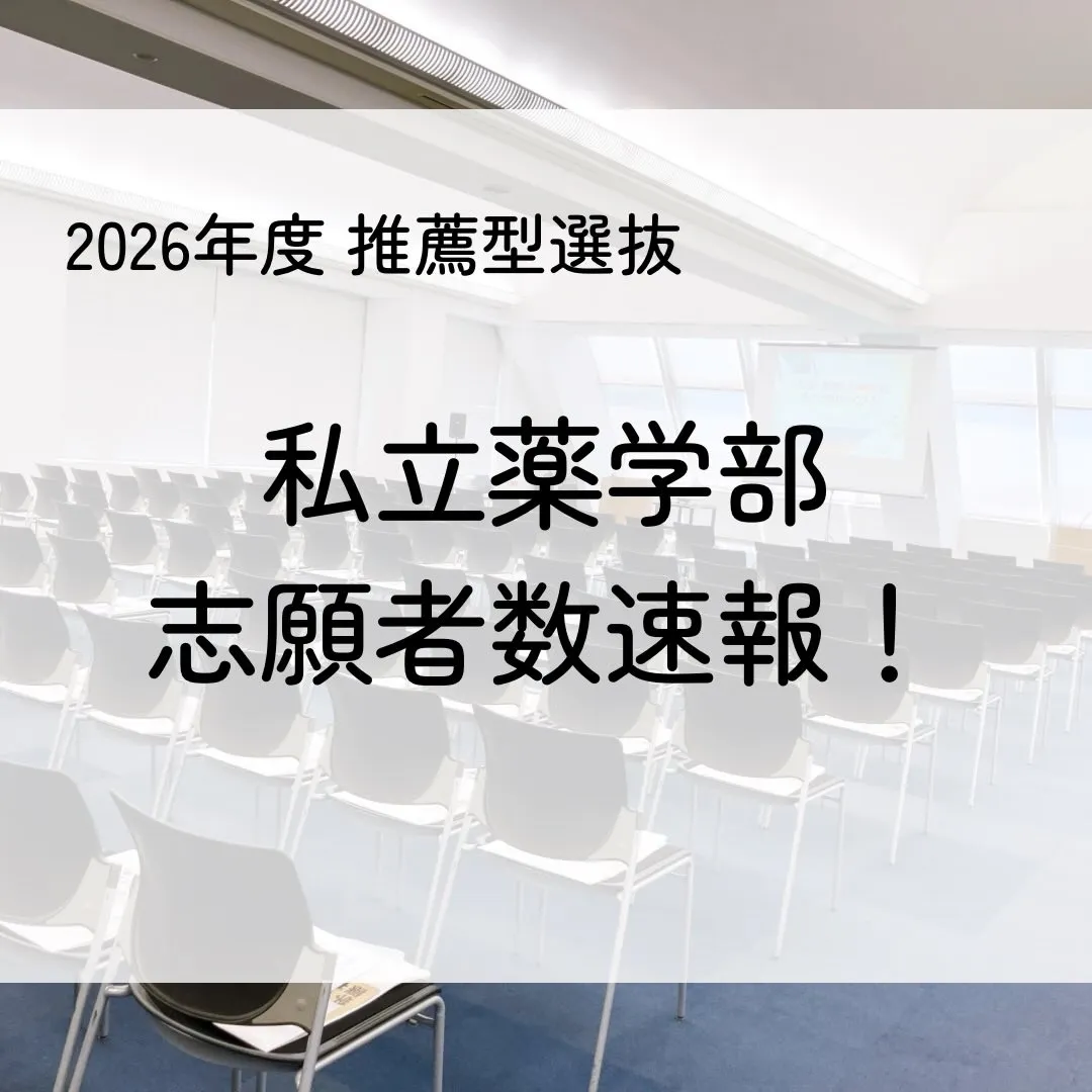 薬学部志願者速報(2026年度推薦型選抜) 薬学部志願者速報(推薦型選抜)こんにちは!メディクール学生課です。2026(令和8)年度関西にある私立薬学部推薦型選抜の志願者速報をまとめました。※()内は募集人数。公表されている大学のみ掲載して…
