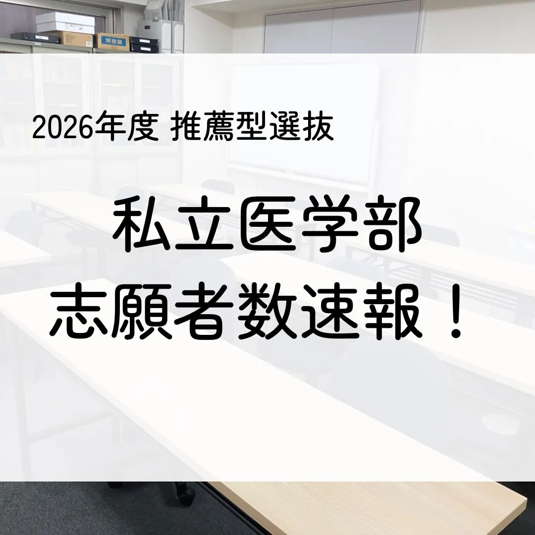 医学部志願者速報(2026年度推薦型選抜) 医学部志願者速報(推薦型選抜)こんにちは!メディクール学生課です。2026(令和8)年度私立医学部推薦型選抜の志願者速報をまとめました。※()内は募集人数。公表されている大学のみ掲載しております。…