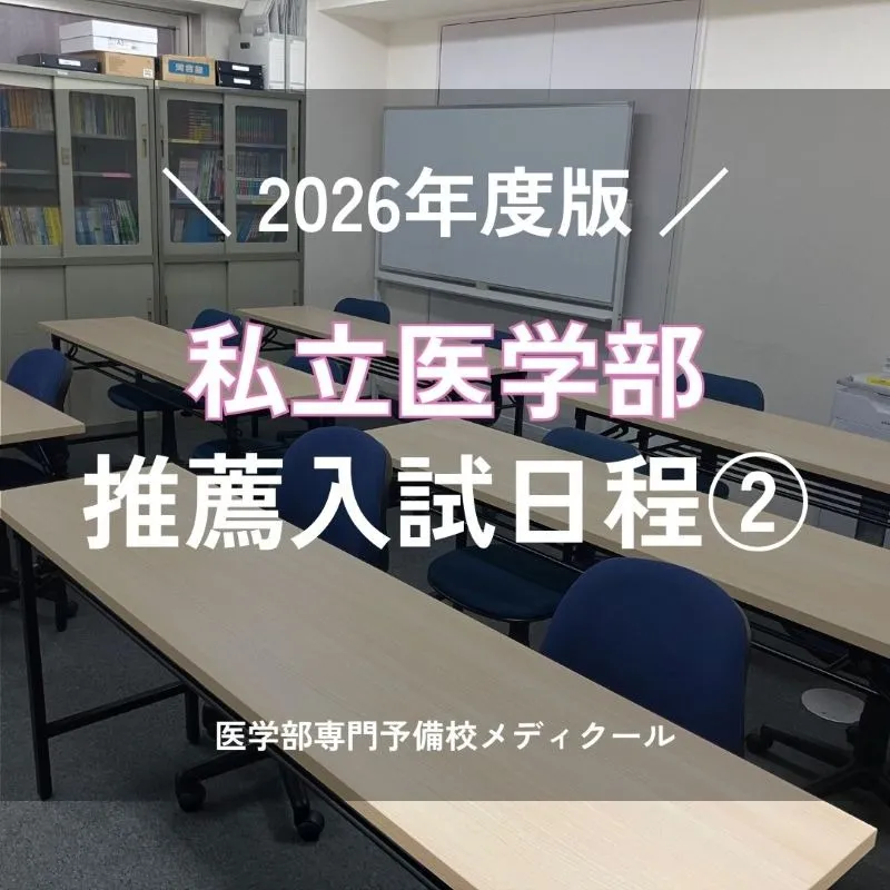 2026年度入試私立医学部の推薦型選抜の試験日程2 こんにちは!メディクール学生課です。 今回は2026年度(令和8年度)私立医学部推薦型選抜の試験日程の情報、後半です。私立医学部では一般入試以外にも…