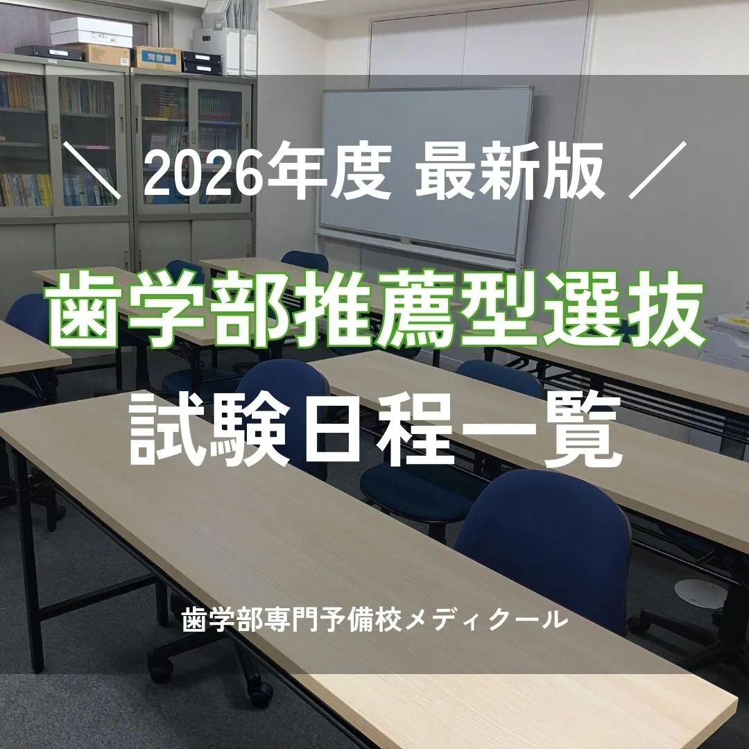2026年度私立歯学部推薦入試の日程/メディクール 2026年度入試私立歯学部の推薦型選抜の試験日程/メディクール こんにちは!メディクール学生課です。 今回は2026年度(令和8年度)私立歯学部推薦型選抜の試験日程の情報です。私立歯学部の推薦型選抜、総…
