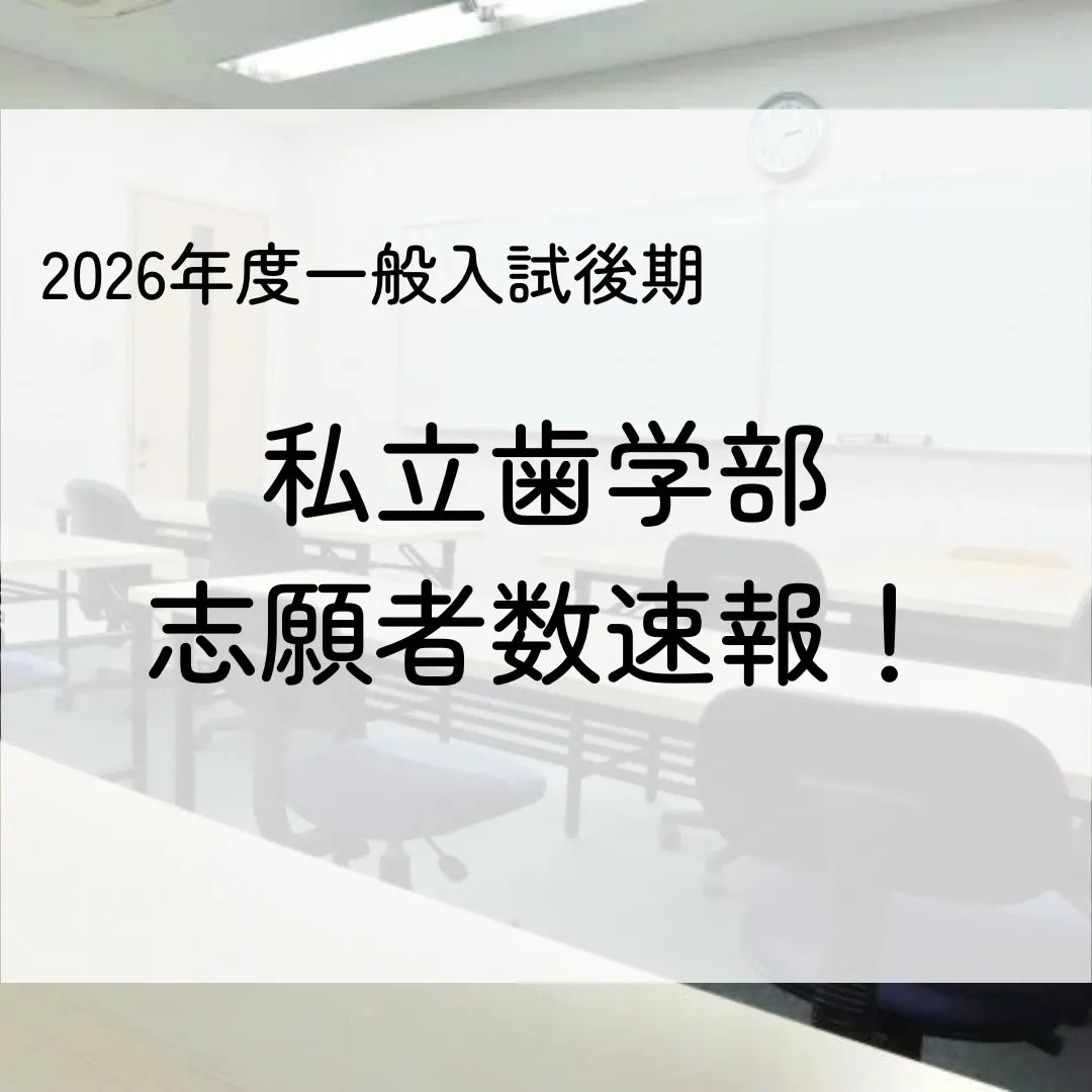 2026年度 私立歯学部一般入試後期の志願者速報 2026(令和8)年度私立歯学部一般入試後期の志願者速報こんにちは!歯学部専門予備校メディクール学生課です。3月に入り、私立歯学部学部入試では後期入試の期間に突入いたしました。歯学部志望の方はぜひ…