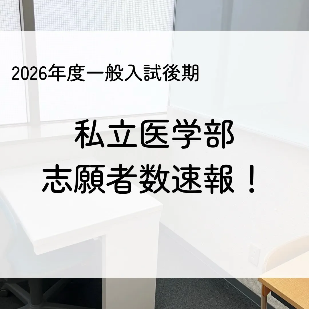 2026年度 私立医学部一般入試後期の志願者速報 2026(令和8)年度私立医学部一般入試後期の志願者速報こんにちは!医学部専門予備校メディクール学生課です。以前より投稿しております、後期入試の志願者速報について、今回は私立医学部編です。医学部志…